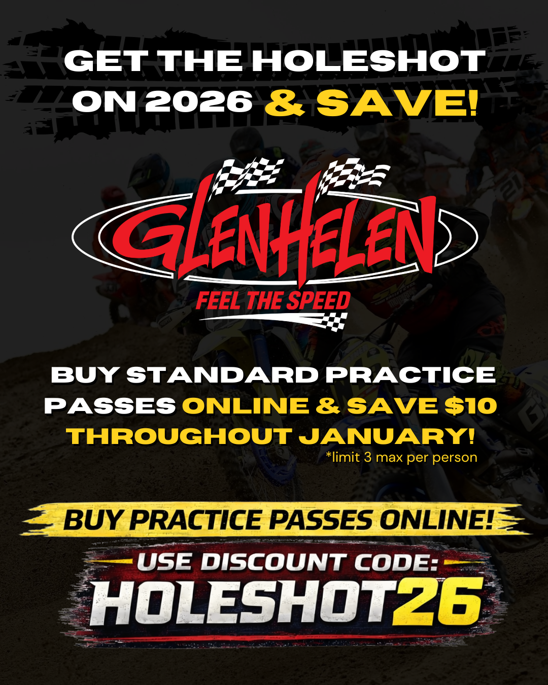 Kick off 2026 the right way at Glen Helen Raceway. For the month of January only, riders can save $10 on standard practice passes when purchasing....